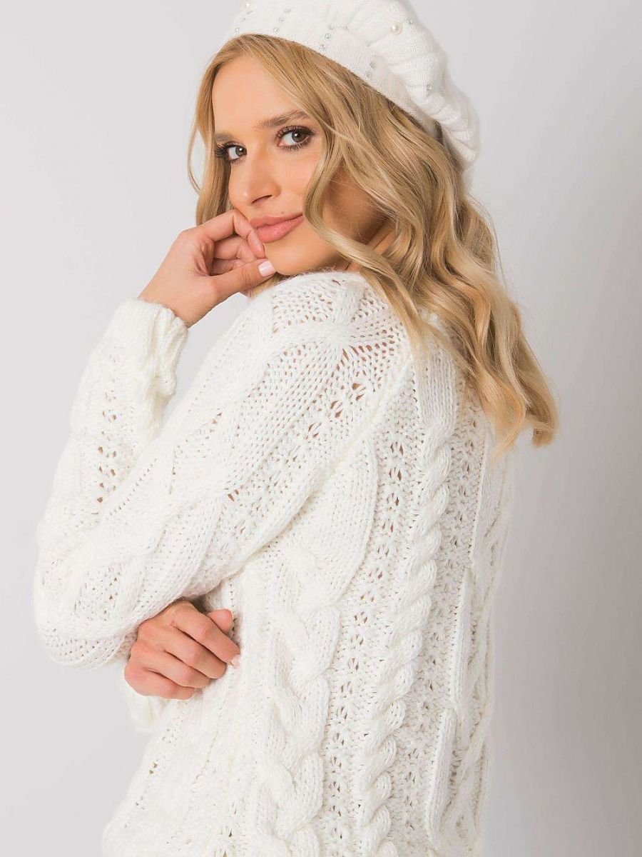Women's cap in ecru color decorated with rhinestones and pearls..