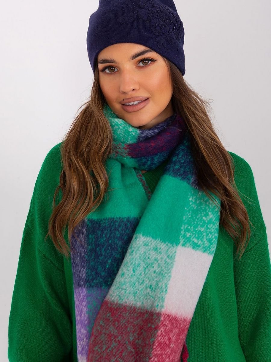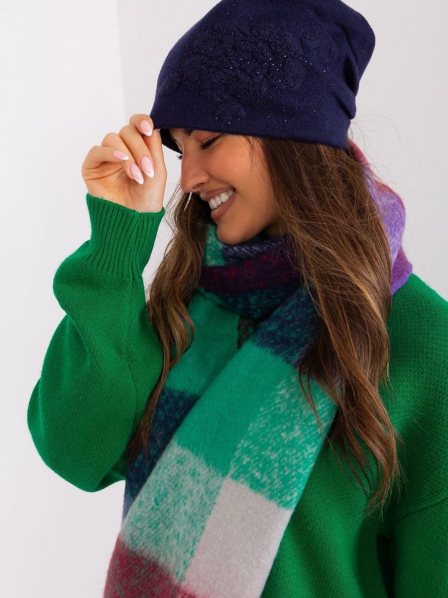 Warm winter women's beanie hat with cashmere, with decorative rhinestone application.