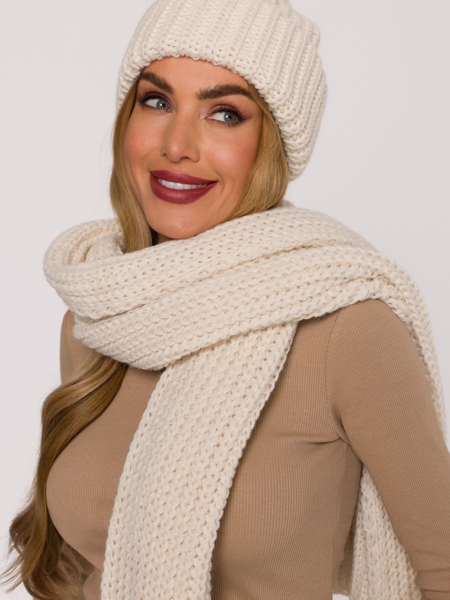 A warm hat made of soft yarn with a thick, ribbed knit. It has a simple cut with a bit of looseness at the top, giving it a relaxed, modern look. The folded edge provides better fit and an extra layer of warmth, creating the perfect combination of style and comfort.