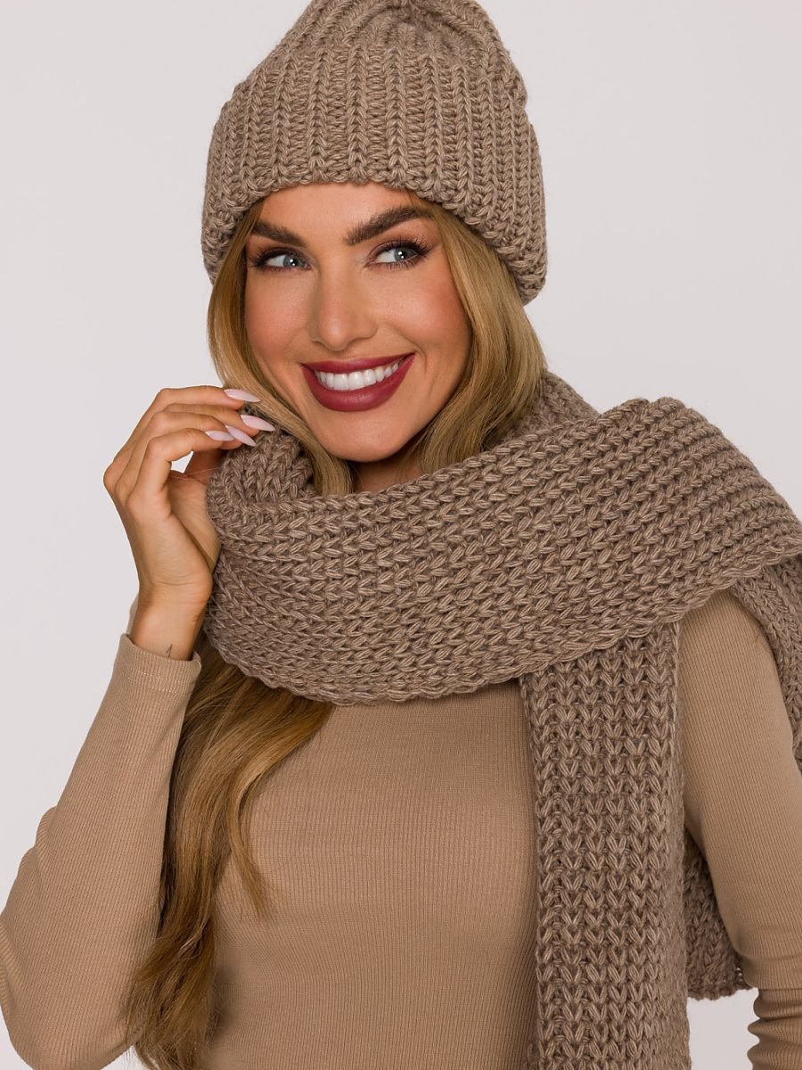 A warm hat made of soft yarn with a thick, ribbed knit. It has a simple cut with a bit of looseness at the top, giving it a relaxed, modern look. The folded edge provides better fit and an additional layer of warmth, creating the perfect combination of style and comfort.